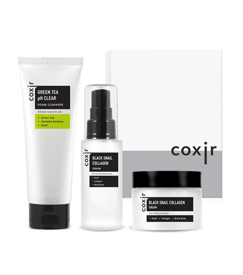 Coxir Black Snail Set, Zestaw do Pielęgnacji Twarzy ze Śluzem Ślimaka, Przeciwzmarszczkowy, Pianka, Serum, Krem