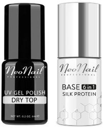 NeoNail Revital Base Fiber, Dry Top, Baza Budująca Pod Lakier z Włóknami, Lakier Hybrydowy Dry Top 2x 7,2ml
