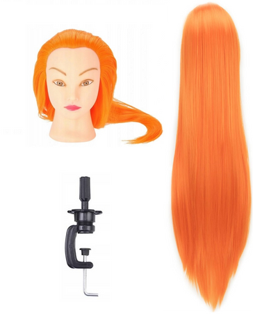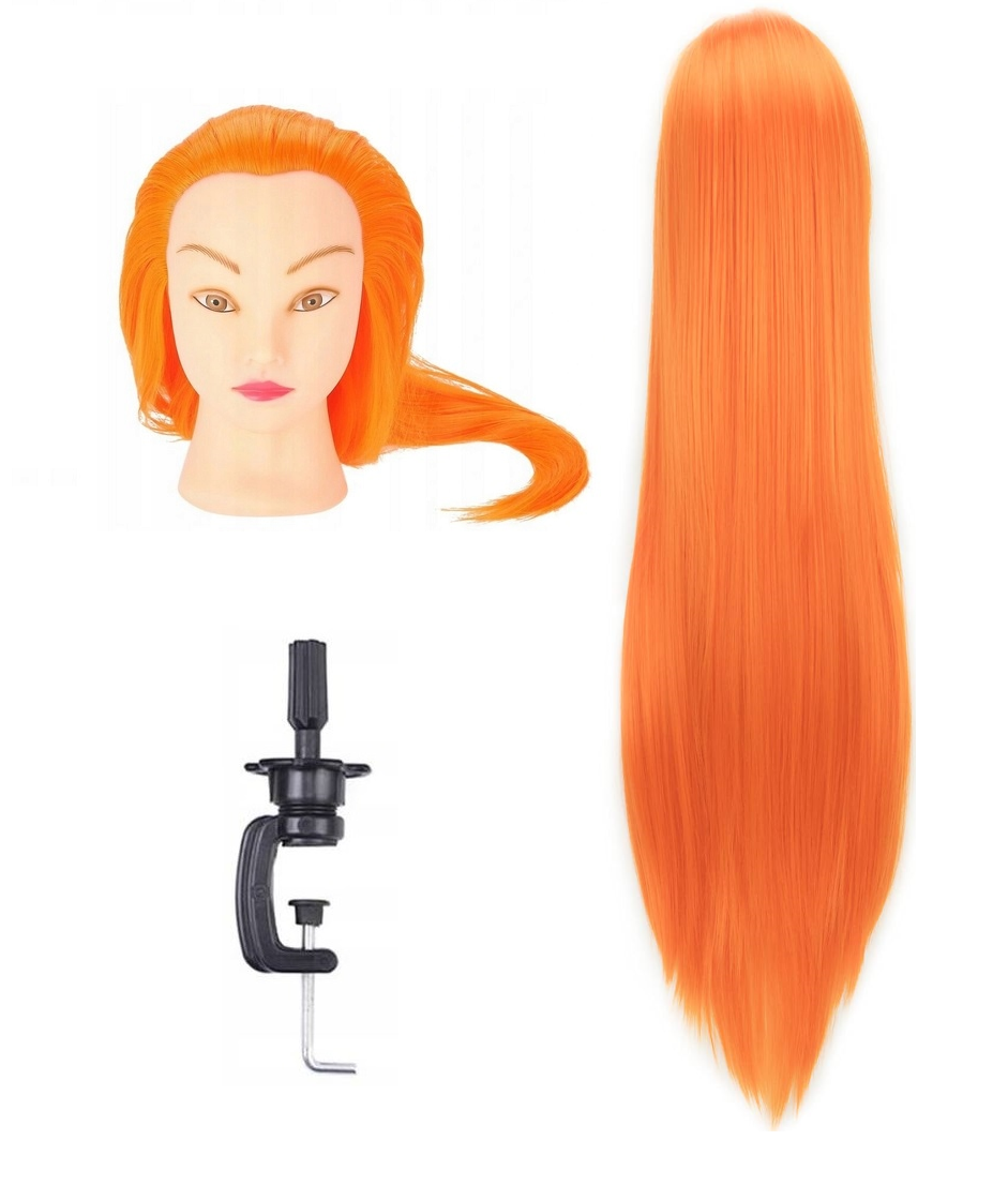 GŁÓWKA FRYZJERSKA TRENINGOWA Z WŁOSEM TERMICZNYM DO 200 STOPNI + STATYW, POMARAŃCZOWA, 80 cm