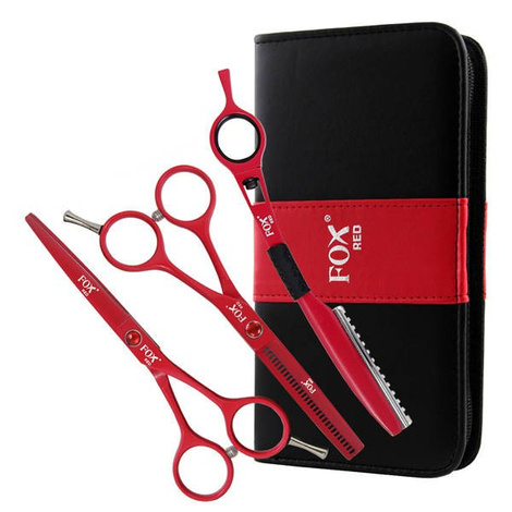Fox Red Nożyczki Zestaw 3szt Nożyczek 5.5'' Degażówek 5.5'' Oraz Noża Chińskiego + Eleganckie Etui