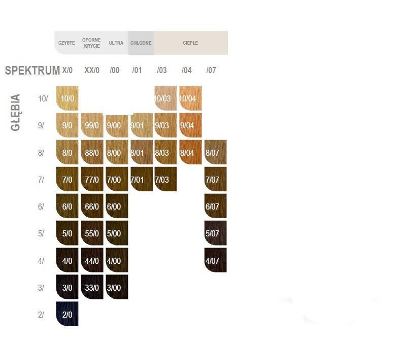 6% farbowanie na kolor ciemniejszy, ton w ton lub rozjaśnianie o 1 ton 9% rozjaśnianie o 2 tony 12% rozjaśnianie o 3 tony