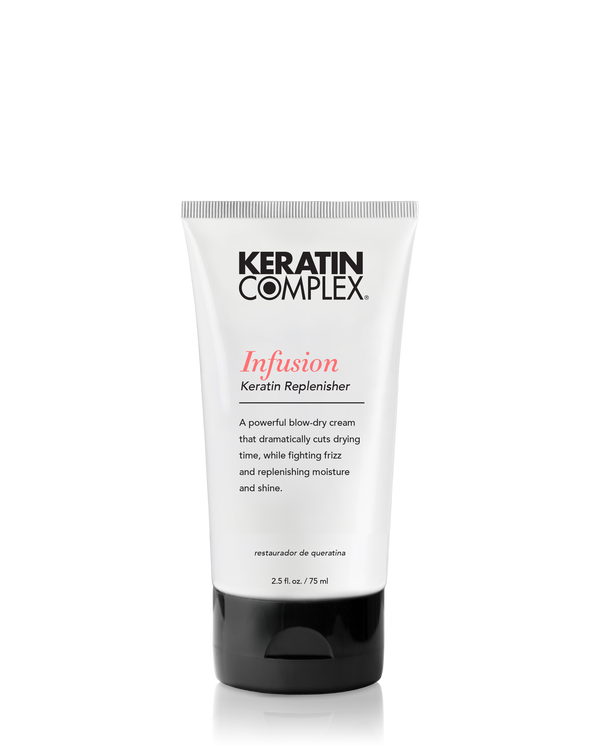 Keratin Complex's Infusion Keratin Replenisher to silny krem do suszenia włosów, który radykalnie skraca czas suszenia, jednocześnie przeciwdziałając puszeniu się włosów oraz nawilżając i nabłyszczając.