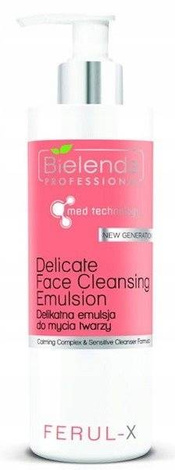 Bielenda Professional delikatna emulsja do mycia twarzy, przeznaczona dla każdego rodzaju skóry, w tym suchej, wrażliwej. Skóra podrażniona po zabiegach medycyny estetycznej oraz intensywnych zabiegach dermokosmetycznych, m.in.: mezoterapia mikroigłowa (roller, dermapen), peeling kwasami, mezoterapia bezigłowa, mikrodermabrazja. Skóra narażona na ekstremalne warunki atmosferyczne (silny mróz, wiatr, słonce). Do oczyszczania i demakijażu każdego rodzaju skóry, szczególnie suchej, wrażliwej oraz dla skóry z trądzikiem różowatym i trądzikiem młodzieńczym. W skład emulsji wchodzą aktywne składniki: Sensitive Cleanser Formula, D-Pantenol, Trehaloza, Alantoina.