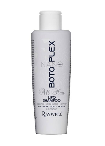 Nano Tech Botoplex marki RAYWELL to linia produktów do włosów opracowana z wykorzystaniem nowych koncepcji technologicznych zdolnych do naprawy i nawilżania wszystkich rodzajów włosów. Zawiera aktywne składniki naturalnego pochodzenia o dużej koncentracji. Płynna KERATYNA naprawia uszkodzoną strukturę włosów, dodatkowo zwiększając ich objętość. Opatentowana cząsteczka CUTICLEX o silnych właściwościach naprawczych, nawilżających i chroniących włosy przed szkodliwym wpływem czynników atmosferycznych. KASZMIR wzmacnia włosy uszkodzone, zapewnia elastyczność, nadając im niesamowitą miękkość i naturalny połysk. KWAS HIALURONOWY wypełnia ubytki, dodaje objętość oraz sprawia, że włosy stają się mocniejsze i zdrowsze. MASŁO SHEA wygładza powierzchnię, eliminuje puszenie i intensywnie nawilża suche i porowate włosy. OLEJEK RYCYNOWY wzmacnia strukturę włosów, zapewniając im nawilżenie i miękkość. LIPOSOMY to nano nośniki składników, które pomagają transportować składniki aktywne do głębokich partii włosa, gdzie wbudowują się w uszkodzone elementy, co znacząco zwiększa efektywność pielęgnacji i odbudowy.