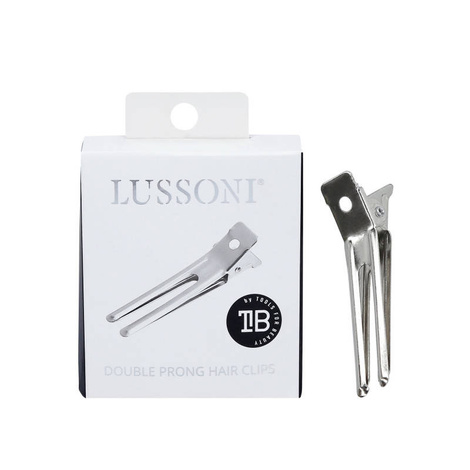 Klipsy LUSSONI zostały wykonane z wysokiej jakości stali szlachetnej. Dzięki swojemu uniwersalnemu kształtowi mogą służyć zarówno do podpinania pasm włosów, jak i do podtrzymania wałków podczas przeprowadzania zabiegu trwałej ondulacji. W opakowaniu znajduje się 36 sztuk klipsów.