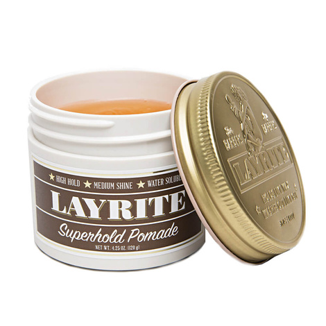 Layrite Superhold Pomade to bardzo mocna pomada o średnim nabłyszczeniu.