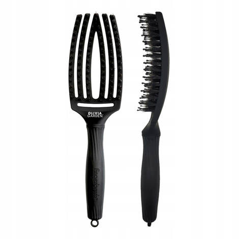 Olivia Garden Fingerbrush Care Iconic Boar&Nylon Full Black M, Szczotka do Rozczesywania Włosów i Masażu, Włosie Dzika