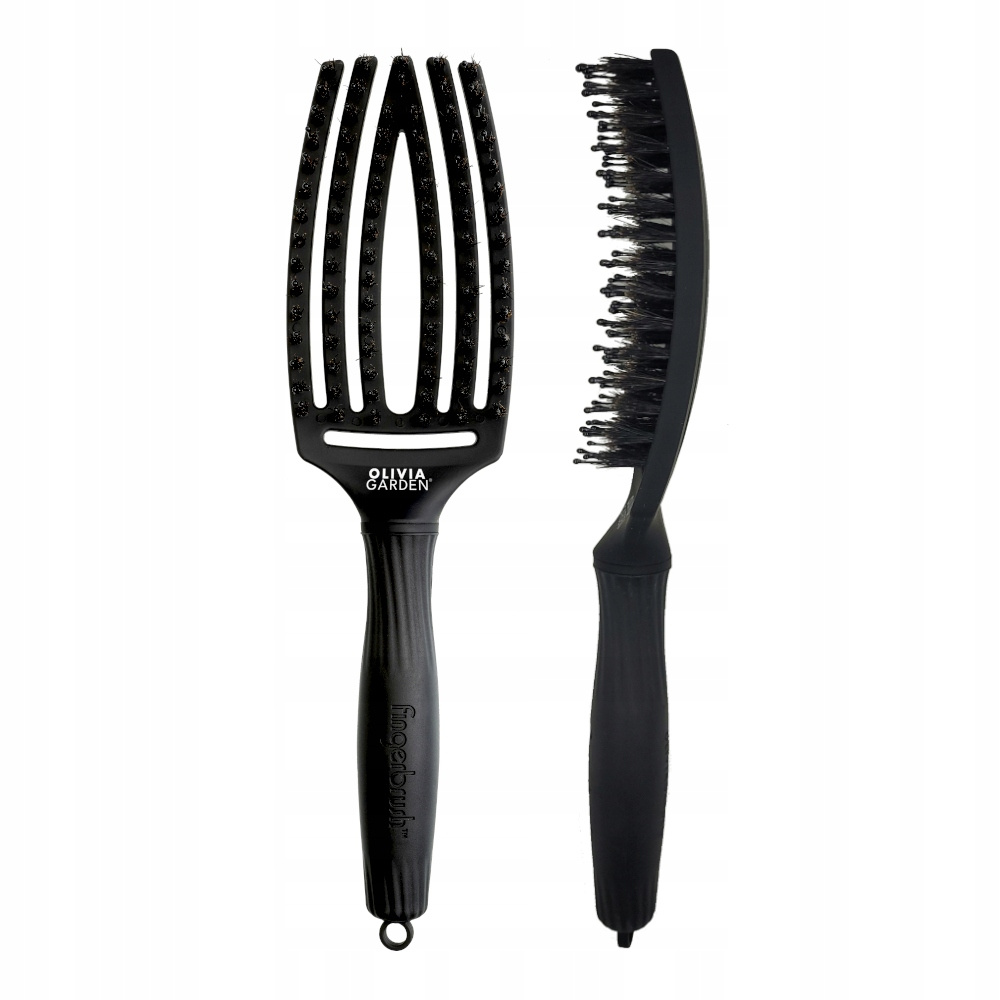 Szczotka Olivia Garden Finger Brush, idealna do rozczesywania włosów. Posiada specjalnie profilowany kształt głowicy, dzięki temu lepiej masuje skórę głowy. Oprócz tego wyróżnia ją specjalne połączenie antystatycznych kolców zakończonych kulką w 100% z włosia dzika. Włosy zyskują objętości oraz blasku. Idealnie sprawdzi się zarówno w salonie fryzjerskim oraz w domowym zaciszu.