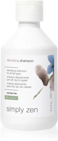 SIMPLY ZEN Detoxifying to szampon cechujący się unikalną i najnowszą technologią o sprecyzowanym działaniu detoksykacyjnym i oczyszczającym. Ponadto delikatna formuła pozbawiona SLS i SLES zapewnia łagodne, a zarazem kompleksowe oczyszczenie. Co więcej szampon zawiera ekstrakt z kitu pszczelego, naturalnej substancji wytwarzanej przez pszczoły w celu ochrony roju przed chorobami. Kit pszczeli ma nadzwyczaj korzystne właściwości antybakteryjne, lecznicze, regenerujące i przeciwutleniające. Ponadto ma w składzie olejki eteryczne, a także ekstrakty z eukaliptusa oraz precyzyjne dobranych roślin, które wykazują działanie oczyszczające, detoksykacyjne i równoważące.