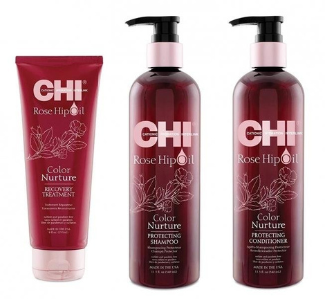 Profesjonalna maska Chi Rose Hip Oil Color Nature Treatment to wyjątkowo skuteczny kosmetyk stworzony z myślą o codziennej pielęgnacji włosów farbowanych. Ze względu na ich wrażliwość i podatność na uszkodzenia, wymagają specjalnego traktowania. Tajemnicą maski jest zawartość olejku z dzikiej róży. Produkt zawiera również przeciwutleniacze i witaminę C. To połączenie wpływa na włosy wzmacniająco. Stają się one odporne na utratę wilgoci i rozdwajanie końcówek. Znacznie wolniej również tracą naturalną wilgotność. Kosmetyk pozostawia włosy podatnymi na stylizację.