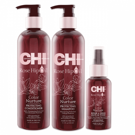Profesjonalny szampon Chi Rose Hip Oil to delikatny preparat do częstej pielęgnacji włosów po koloryzacji. Kosmetyk działa bardzo delikatnie i nie wypłukuje koloru. Dzięki temu dłużej utrzymują się efekty farbowania. Skuteczne działanie pielęgnacyjne zawdzięcza zawartości naturalnych składników. Są to m.in. olejek z dzikiej róży i witamina C. Ochronny olejek nawilża włosy od zewnątrz. Wpływa to na zmniejszenie utraty wilgoci i zwiększenie odporności na uszkodzenia mechaniczne. Poprawia też sprężystość włosów i nadaje blasku.
