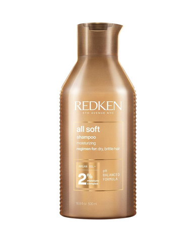 Czy masz już dość suchych włosów? Najwyższy czas przywrócić im naturalny blask, wygładzenie i podatność na stylizację. Szampon do suchych i łamliwych włosów z olejkiem arganowym Redken All Soft delikatnie je oczyści i intensywnie odżywi. Kompleks proteinowy RCT zapewnia włóknom włosów dokładnie taką pielęgnację, jakiej potrzebują.