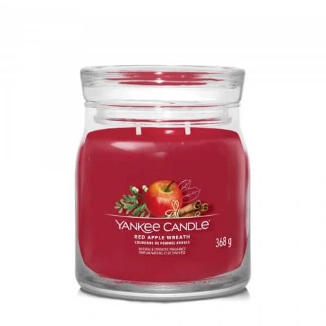 Yankee Candle Signature Red Apple Wreath, Średnia Świeca Sojowa z Dwoma Knotami, 368g
