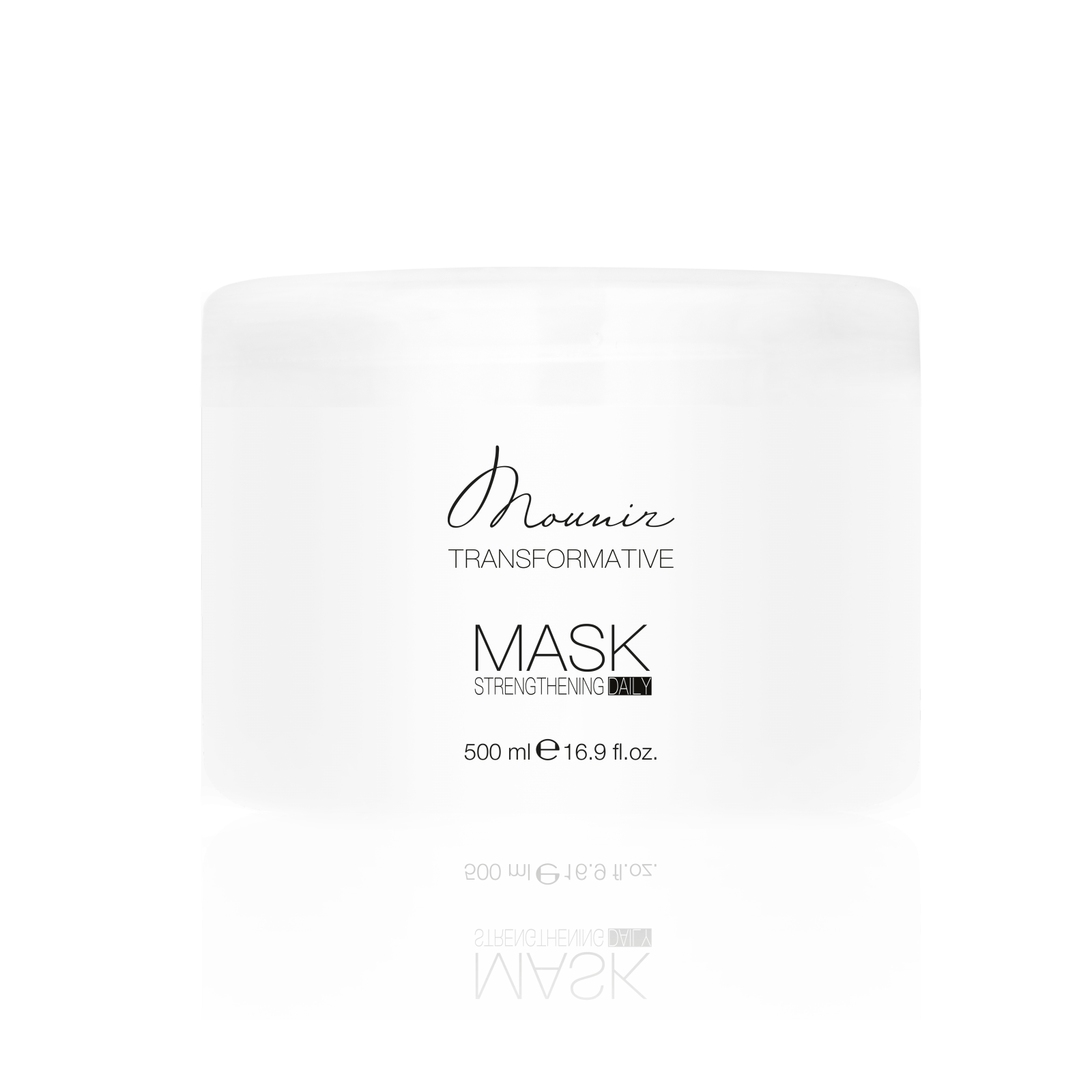 Mounir Transformative, dzięki synergicznemu działaniu kwasu hialuronowego i keratyny, wykonuje kompletne działanie wzmacniające, w szczególności transformując włosy i przywracając ich oryginalną, nieuszkodzoną strukturę i objętość, zapewniając blask i regenerację.