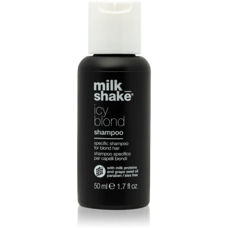 Szampon Milk Shake Icy Blond w swojej formule zawiera specjalne pigmenty, które przeciwdziałają pojawieniu się ciepłych żółtych i pomarańczowych refleksów niwelując je. Szampon sprawdza się zarówno przy pielęgnacji włosów naturalnych jak i rozjaśnianych. Szampon chroni kolor włosów przed wypłukaniem.