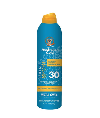 Australian Gold SPF 30 Cont Spray Extreme Sport Ultra Chill, Chłodzący i Odświeżający Spray do Ciała z Filtrami UV, 170g