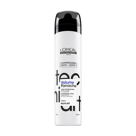 Volume Panache to nadający fakturę puder w sprayu, który można wykorzystywać do stworzenia niesamowitej objętości. Zawiera najwyższe stężenie pudru stosowane dotąd przez L`Oréal Professionnel.