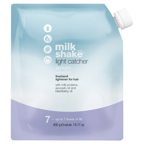 Milk_shake light catcher spotlight : Niezwykła gama opracowana w celu tworzenia promiennych , intensywnych blondów, od najbardziej naturalnie wyglądających po najbardziej ekstremalne i kreatywne . Spotlight ułatwia profesjonalistom w salonie uzyskanie efektów koloryzacji i rozjaśniania włosów dzięki pięknym akcentom światła , które są świeże i ekscytujące .