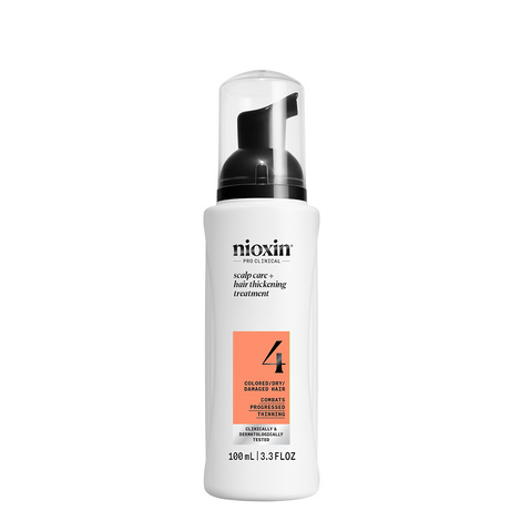 Nioxin Pro Clinical 4 serum bez spłukiwania do skóry głowy i farbowanych włosów z postępującym przerzedzeniem odświeża skórę głowy i zwiększa objętość włosów. Ten spray pomaga uzyskać wrażenie gęstszych włosów, zwiększając pełność każdego włosa. Nioxin serum bez spłukiwania to ostatni krok trzyetapowego systemu, który wzmacnia teksturę włosów, jednocześnie chroniąc je przed łamaniem. Regularne stosowanie wszystkich produktów z serii Nioxin Pro Clinical 4 widocznie pogrubia włosy, co potwierdziło aż 85% badanych.