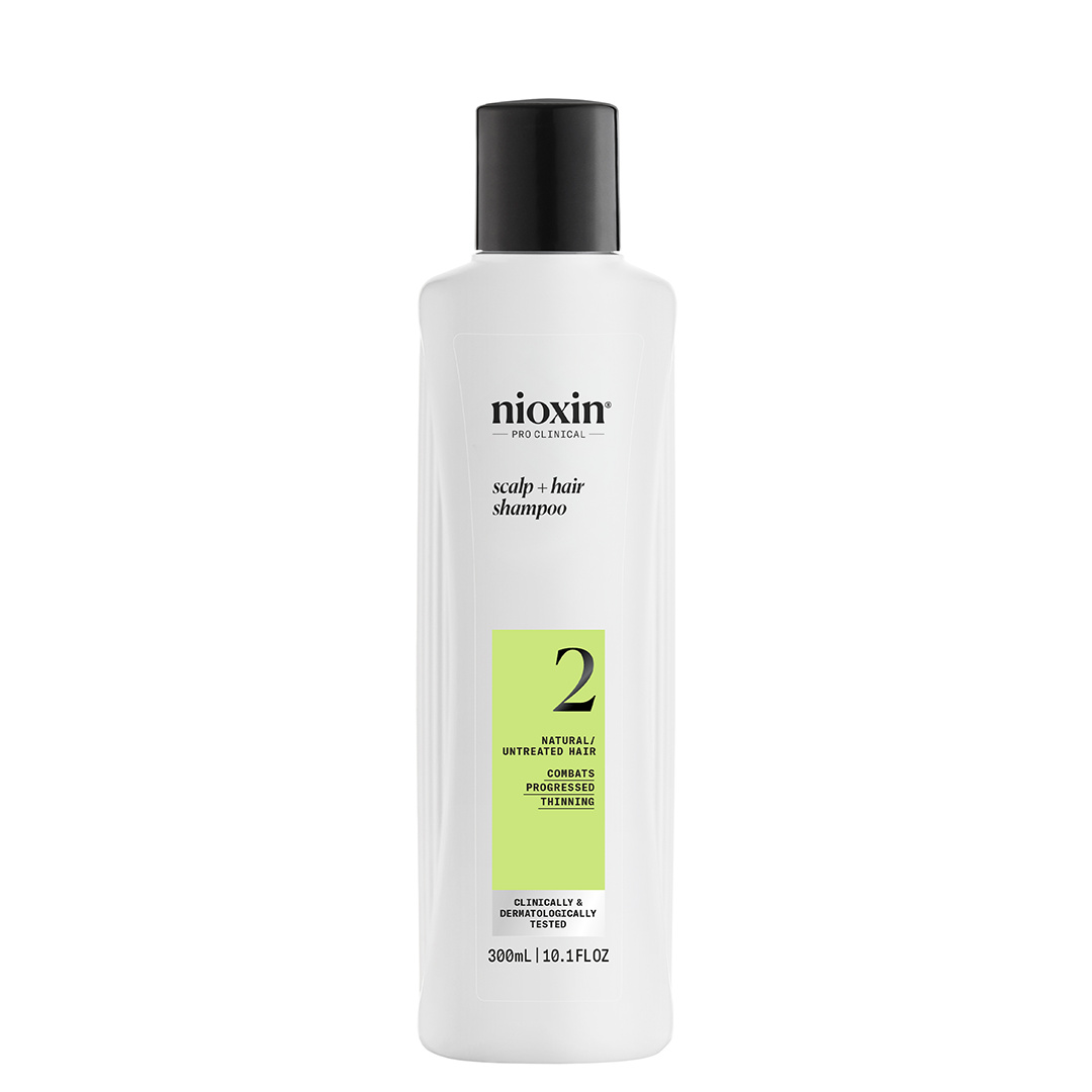 Szampon oczyszczający Nioxin Pro Clinical 2 przeznaczony do włosów naturalnych z postępującym przerzedzeniem to pierwszy krok trzyetapowego systemu Nioxin, specjalnie opracowanego w celu wzmacniania włosów i zwiększania ich objętości. Przygotowuje włosy i skórę głowy do kompleksowego zabiegu zwiększającego gęstość włosów z trzyetapowym systemem Nioxin. Ten profesjonalny oczyszczający szampon dermokosmetyczny usuwa brud, nadmiar oleju i inne zanieczyszczenia ze skóry głowy i włosów. Regularne stosowanie wszystkich produktów z serii Nioxin Pro Clinical 2 widocznie pogrubia włosy, co potwierdziło aż 85% badanych.