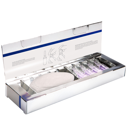 Płatki z aktywatorem przeznaczone do profesjonalnej pielęgnacji skóry wokół oczu. Zawiera neuropeptyd Syn®-Ake zapobiegający tworzeniu się zmarszczek mimicznych oraz Matrixyl® 3000, który widocznie odmładza i zagęszcza skórę. Kompleks ekstraktów roślinnych redukuje opuchnięcia i cienie oraz koi podrażnienia wrażliwej okolicy oczu. Innowacyjny kształt płatków umożliwia wykonanie zabiegów obejmujących skórę pod oczami, kurze łapki oraz górną powiekę.
