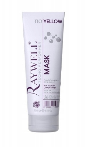 Maska No Yellow włoskiej marki Raywell o działaniu rozświetlającym i przeciw żółknieniu włosów, idealna do ukrycia pierwszych siwych włosów.