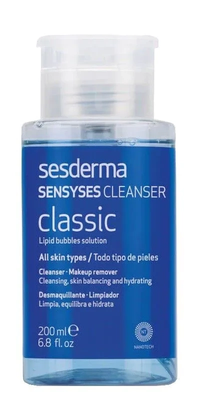 Sesderma Sensyses Cleanser Classic płyn do oczyszczania i demakijażu, 200 ml świetnie sprawdza się w przypadku każdego typu skóry, również wrażliwej. Preparat delikatnie oczyszcza skórę z resztek makijażu, tonizuje ją i łagodzi podrażnienia.