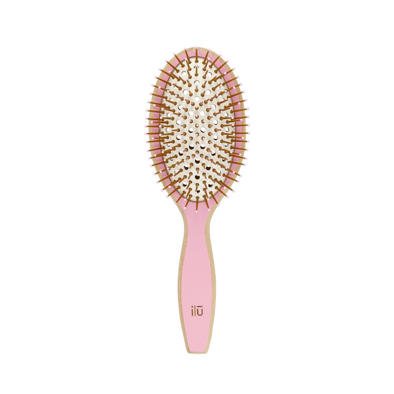 Szczotka do rozczesywania włosów BambooM! posiada wyjątkową konstrukcję z wentylowanym korpusem i poduszeczką oraz ergonomiczną rączką. Antystatyczne igiełki są zakończone kulkami więc nie plączą włosów i delikatnie masują skórę głowy poprawiając jej ukrwienie.