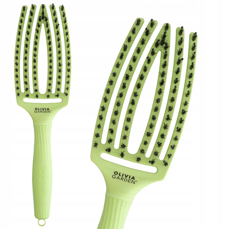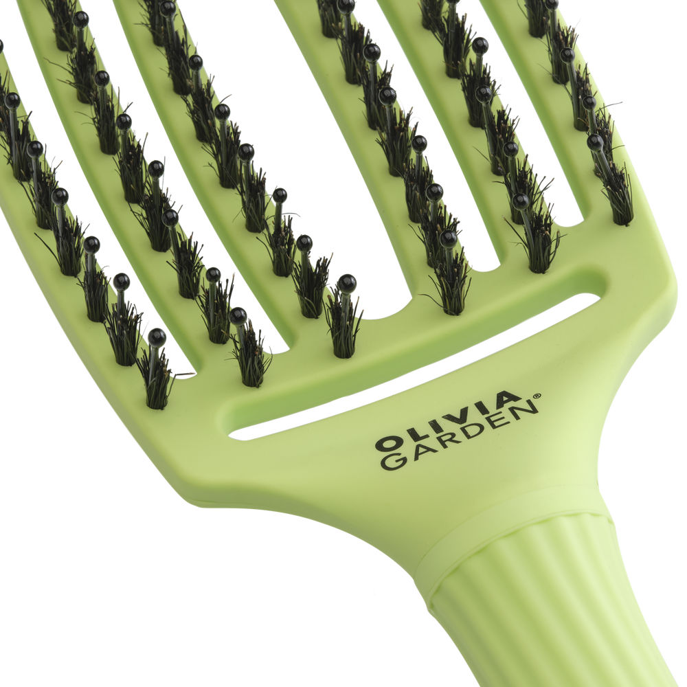 Olivia Garden Finger Brush Care Iconic Szczotka do Rozczesywania Włosów i Masażu, Włosie Dzika, Medium Green Pistachio
