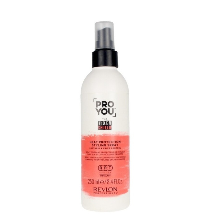 Spray Revlon ProYou The Fixer jest przeznaczony do ochrony włosów podczas stylizacji z użyciem wysokiej temperatury. Może być stosowany do każdego typu pasm, szczególnie trudnych do zdyscyplinowania i puszących się, ponieważ zapewnia ochronę przed puszeniem. Ma wygodną formę sprayu, dzięki czemu jego aplikacja jest bardzo prosta.