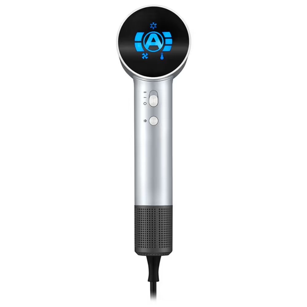 Suszarka jest wyposażona w duży, płaski wyświetlacz LED, który w czytelny sposób wyświetla wybrane parametry suszenia, a przy tym wygląda spektakularnie. Silnik bezszczotkowy zapewnia rewelacyjną wydajność urządzenia. W porównaniu do jego tradycyjnych, szczotkowych odpowiedników, pracuje ciszej, zużywa mniej energii i jest trwalszy. Silnik jest zlokalizowany w uchwycie, co sprawia, że suszarka jest idealnie wyważona. To z kolei przekłada się na wygodniejsze manewrowanie urządzeniem, mniejsze obciążenie dłoni i redukcję hałasu. Uchwyt jest zakończony filtrem, który zatrzymuje zanieczyszczenia, takie jak włosy czy kurz, by nie osadzały się na silniku. Dla zapewnienia prawidłowego przepływu powietrza, filtr można łatwo zdemontować do umycia.
