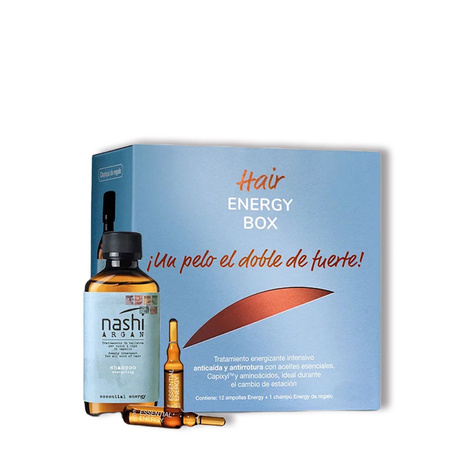 Nashi Argan Hair Energy Box to profesjonalny, system pielęgnacji, opracowany specjalnie dla włosów zniszczonych i pozbawionych witalności. Produkty uzupełniające w zestawie zapewniają głęboką regenerację, natychmiastową energię i długotrwały połysk.