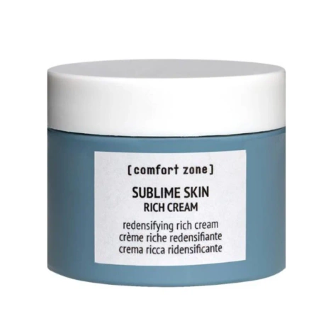 Comfort Zone Sublime Skin Redensifying Rich Cream, dzięki bogatej i zmiękczającej formule, rewitalizuje skórę i pozostawia ją nawilżoną, o bardziej jednolitym kolorycie i promiennym blasku. Składniki aktywne zawarte w Comfort Zone Sublime Skin Redensifying Rich Cream stymulują produkcję kolagenu, odbudowują barierę ochronną skóry i zwalczają ekstremalną suchość, wiotkość i utratę gęstości skóry. 98,8% składników jest pochodzenia naturalnego.