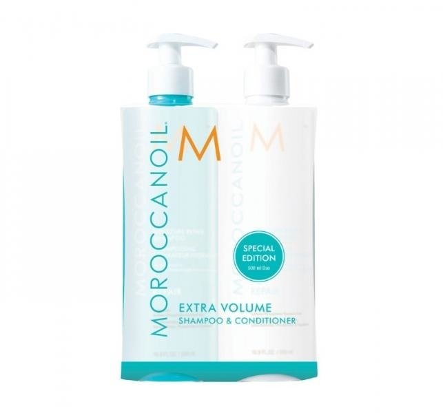 Moroccanoil Extra Volume Zestaw - Szampon i odżywka organiczna nadająca objętość z olejkiem arganowym, 2x500 ml