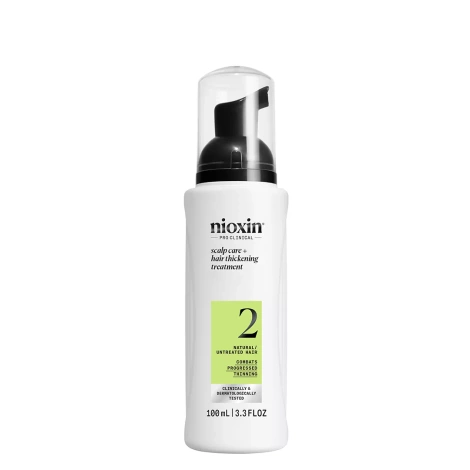 Nioxin System 2 serum bez spłukiwania do skóry głowy i naturalnych włosów z postępującym przerzedzeniem odświeża skórę głowy i zwiększa objętość włosów. Ten spray pomaga uzyskać wrażenie gęstszych włosów, zwiększając pełność każdego włosa. Nioxin serum bez spłukiwania to ostatni krok trzyetapowego systemu, który wzmacnia teksturę włosów, jednocześnie chroniąc je przed łamaniem. Regularne stosowanie wszystkich produktów z serii Nioxin System 2 widocznie pogrubia włosy, co potwierdziło aż 85% badanych.*