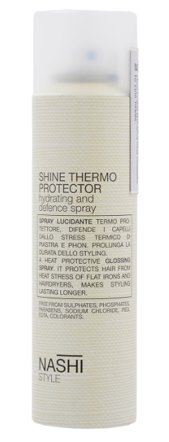 Shine Thermo Protector od Nashi nadaje włosom nie tylko maksymalny połysk, ale także niezwykłą miękkość. Twoje falowane włosy pozostają gładkie przez długi czas. Łatwo się rozczesują. Spray nabłyszczający, który nie pozostawia osadu na włosach.