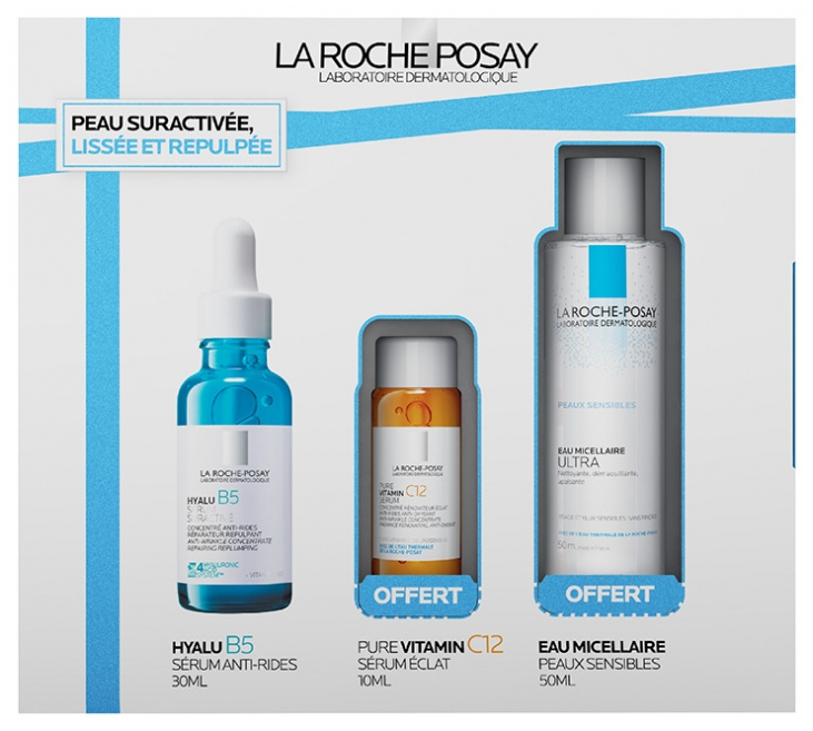 La Roche-Posay Hyalu B5 Serum Set, Zestaw, Serum z Witaminą C12 10ml, Serum Hialuronowe, 30ml, Woda Micelarna 50ml