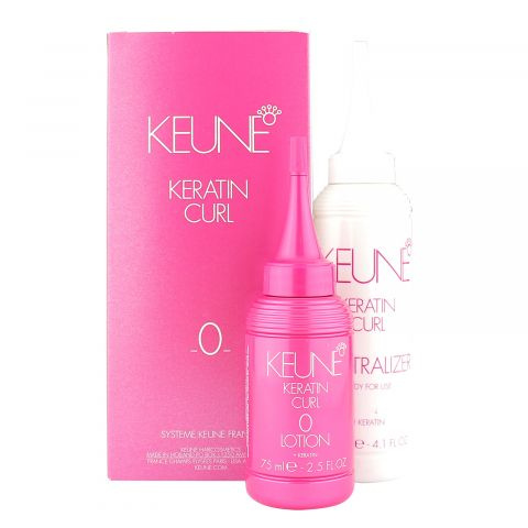 Keune Keratin Curl Lotion 0, Zestaw Do Trwałej Ondulacji Włosów Opornych, Trudnych do Kręcenia, 120ml + 75ml