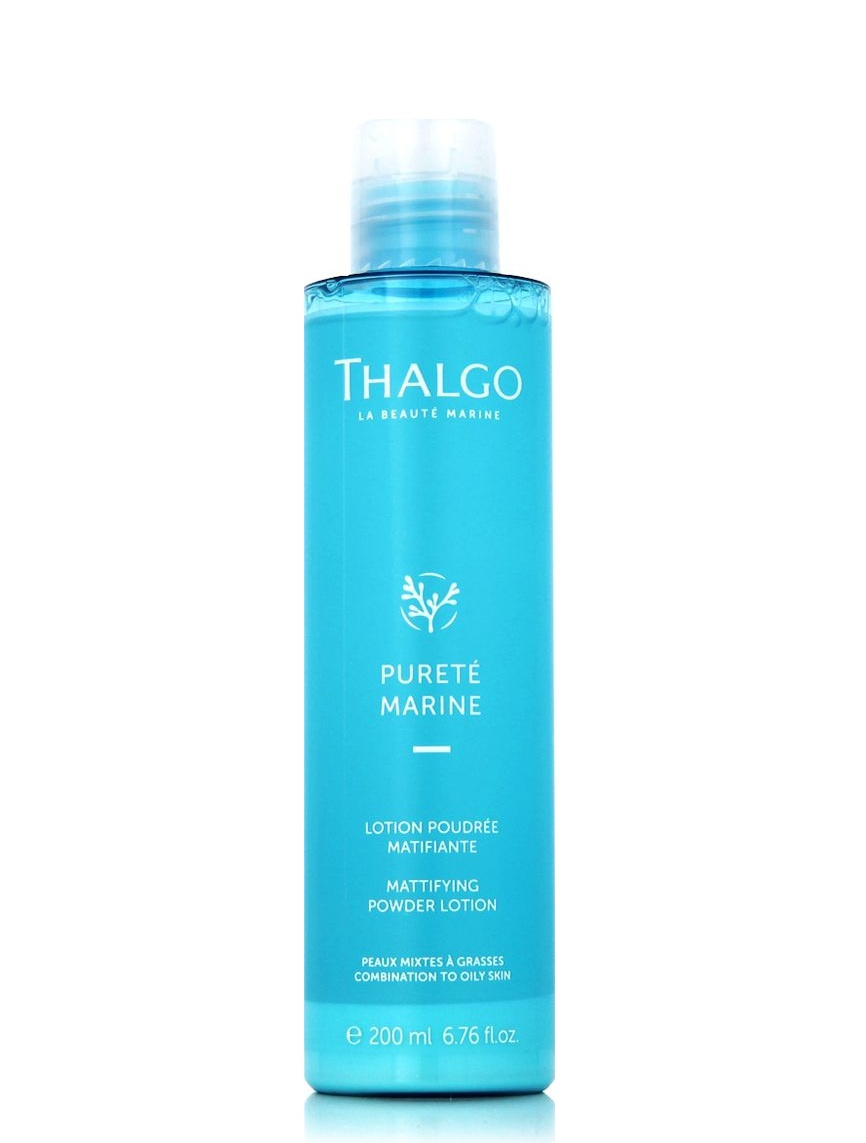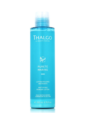 Odświeżający tonik Thalgo Mattifying Powder Lotion o właściwościach matujących dla skór mieszanych oraz tłustych. Dzięki zawartości kompleksów z dwóch al:g Tetraselmis Chui i Fucus Spiralis, cynku, alkoholu działa przeciwzapalnie i zmniejsza wydzielanie sebum. Dodatek pudrów zapewnia długotrwały efekt matowego wyglądu skóry. Thalgo Mattifying Powder Lotion szczególnie polecany przed aplikacją kosmetyków pielęgnacyjnych.